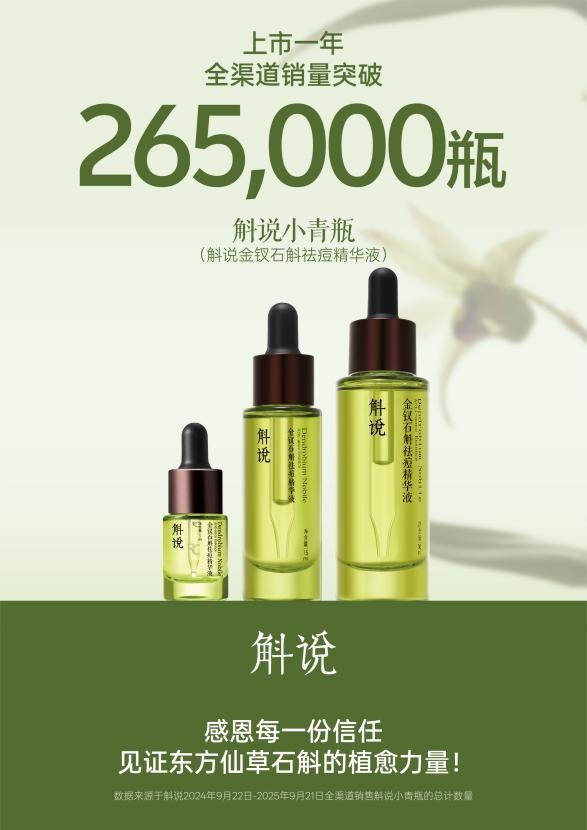 斛说品牌负责人表示:“单品26.5万瓶的销量,这一数字与成熟头部品牌仍有很大距离,但对一个从高校实验室走出来的新生品牌而言,无疑是一份极大的鼓励,也是用户对我们‘高校科研+中国特色成分+温和陪伴植愈’模式真切的认可。未来,我们将持续深化在石斛及其他本土植物成分领域的科研投入,不断拓展产品边界,致力于将斛说打造为一个以科技为引擎、以用户为中心、兼具社会责任感的国货护肤品牌,让这株千年仙草的科学价值与情绪能量,触达更多需要它的人。”