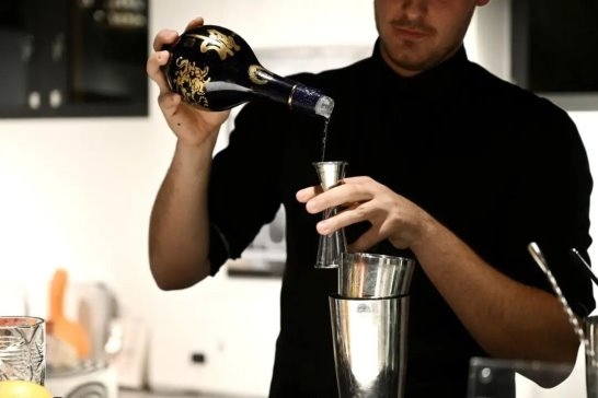 调酒师在主题鸡尾酒会上调制青花郎创意鸡尾酒