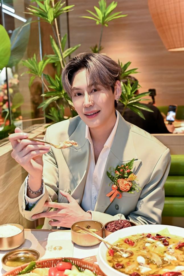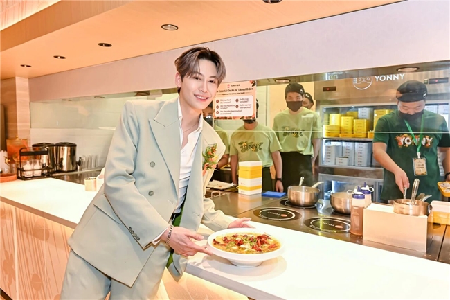 开业仪式上,Boun文总身着浅绿色休闲穿搭亮相,瞬间点燃全场热情,粉丝的欢呼声与媒体的快门声交织成一片。活动中,Boun文总不仅亲切与现场粉丝互动、献唱热门单曲,更与品牌创始人魏彤蓉等嘉宾一同参与全球首家山野风门店开业剪彩仪式。Boun文总表示,自己此前便在社交平台刷到过鱼你在一起的酸菜鱼,一直期待品尝,很荣幸能以品牌特邀体验官的身份,见证品牌山野风新形象的全球首秀。