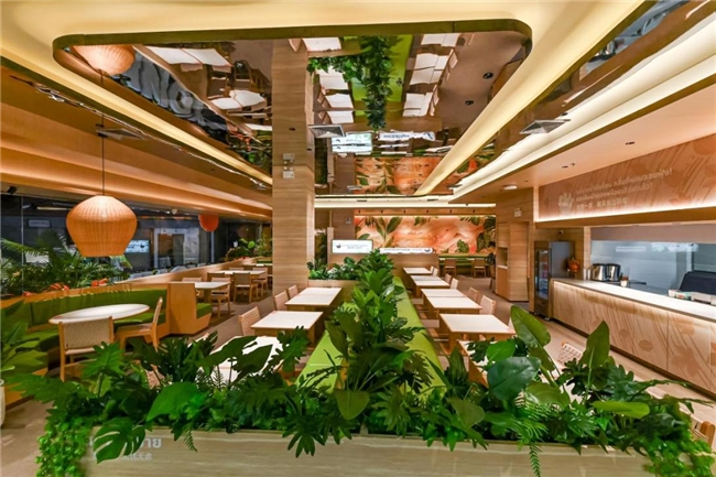作为鱼你在一起今年重磅推出的6.0新形象,山野风店型其核心亮点在于“东方山野美学+多元产品”的双重优势。空间上,门店以夯土、原木、天然绿植等材质打造“城市轻山野”环境,实现品牌从“提供餐食”到“提供情绪价值”的升维转变,完成从文化展示到情感共鸣的跨越;产品上,延续经典酸菜鱼的同时,新增烫捞品类,搭配丰富汤底以及适配泰国人口味的冬阴功味,既贴合本地饮食偏好,又丰富了消费选择。在试营业期间,门店便凭借独特的产品与场景优势,成为曼谷Union Mall商圈新晋热门餐饮打卡地。